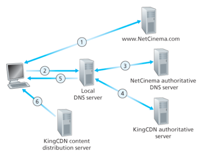 책임 DNS 서버는 해당 질의를 CDN 서버로 연결하기 위해 CDN 서버의 책임 DNS 서버의 IP를 전달한다. - 로컬 DNS는 CDN 서버의 책임 DNS로 질의를 보내고, CDN 콘텐츠 서버의 IP 주소를 로컬 DNS 서버로 응답한다.