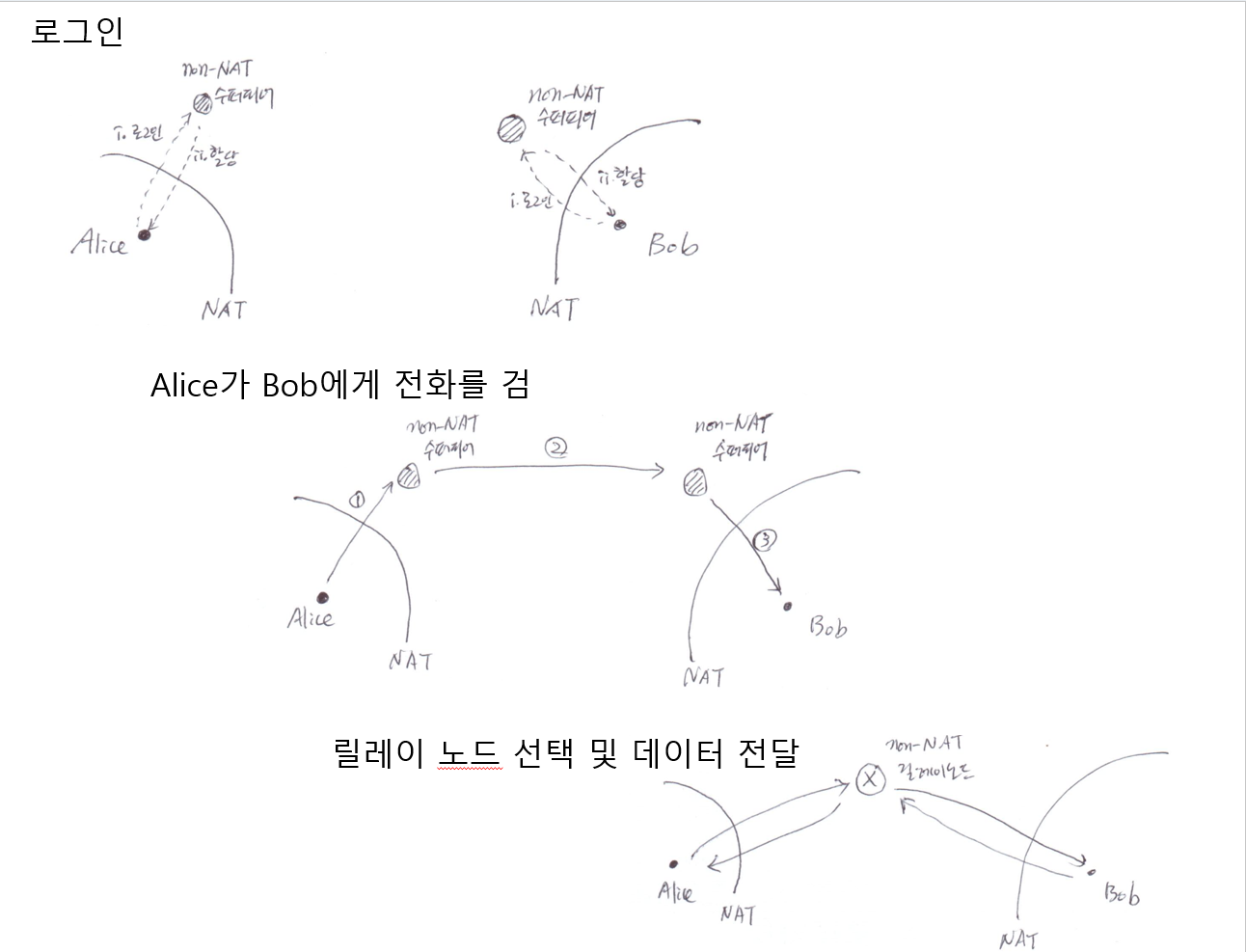 Alice는 로그인하면 NAT에 가입하지 않은 슈퍼 피어가 할당된다.