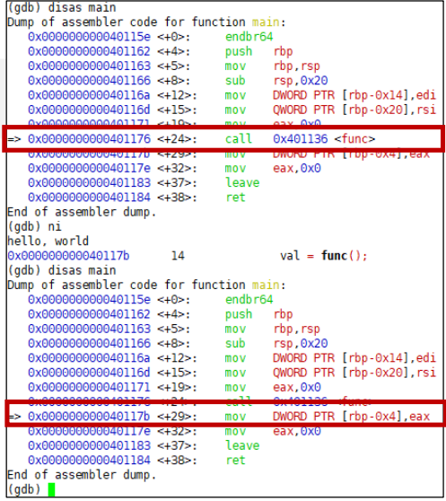 'step'과 비슷한 'next'는 sigle-steps를 명령어로 갖고 있지만 하위 루틴의 각각의 줄을 실행시키지 않는다.