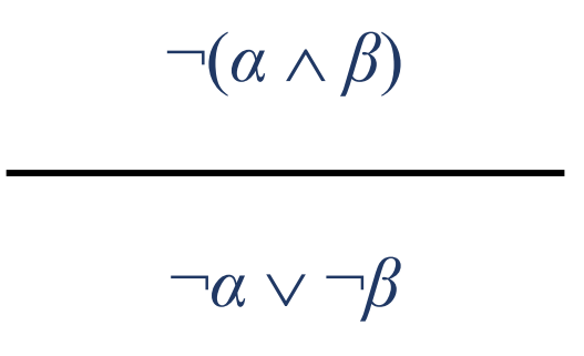 - ¬(α ∧ β)를 ¬α ∨ ¬β로 바꾼다.