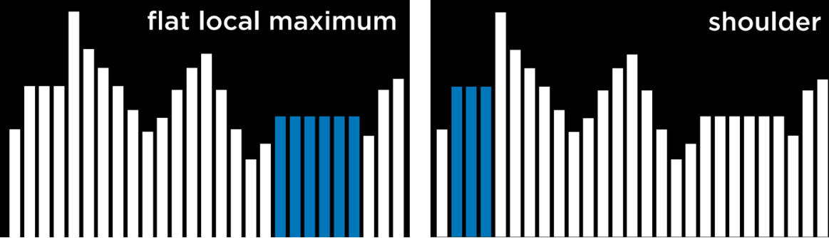언덕 오르기 알고리즘의 문제점은 극댓값과 극솟값에 멈출 수 있다는 것이다. 알고리즘이 함수의 목적에 따라 현재 상태보다 더 나쁜 이웃이 있는 지점에 도달하면 알고리즘이 멈춘다. 극댓값과 극솟값의 특별한 유형인 편평한 극대값/극소값을 알아보자.