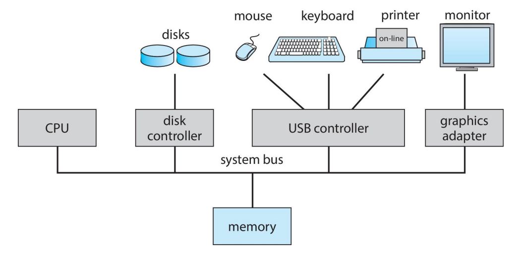 - 공유된 메모리에 접근할 수 있게 제공하는 일반적인 bus를 통해 하나 이상의 CPU들과 기기 제어기들과 연결시킨다.