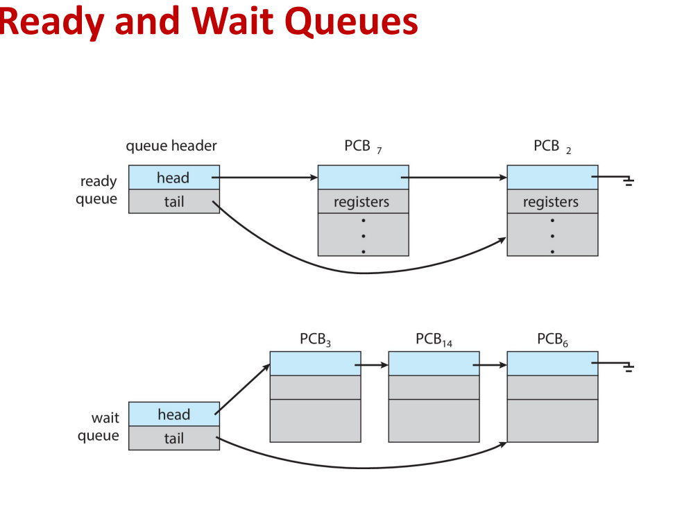 • Wait queues – 이벤트를 기다리는 프로세스 집 (ex: I/O)