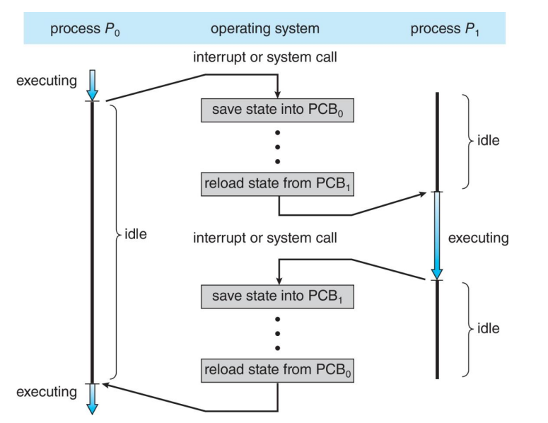 - CPU가 다른 프로세스로 전환되면 시스템은 이전 프로세스의 state를 저장해야 하고 context switch를 통해 저장된 state를 새 프로세스에 로드해야 한다.