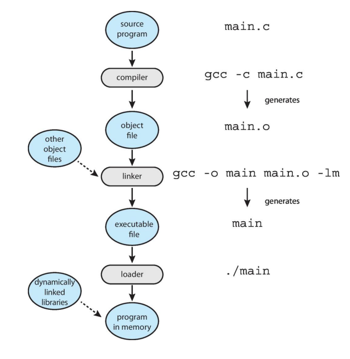 - 주로, 프로그램은 disk상에서 이진 실행 파일로 저장된다. CPU에서 작동하려면, 프로그램은 메모리로부터 불리고, 프로세스의 context에 배치되어 있어야 한다.