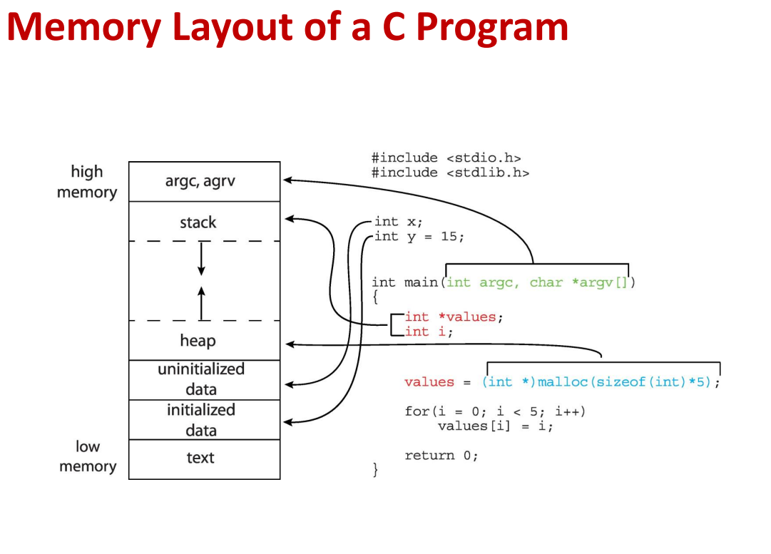 • 실행 중에 동적으로 할당된 메모리를 포함하는 heap