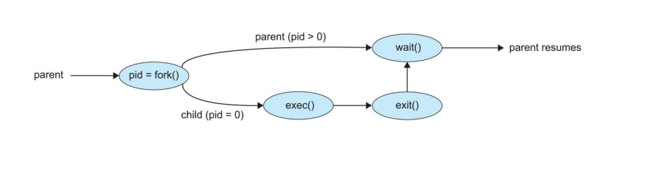 fork() call 이후에, exec() syscall에 의해 부모 자식 중 하나는 프로세스 메모리 공간을 새 프로그램으로 교체한다. 이러한 방식을 통해 서로 분리되면서도 소통할 수 있게 된다.